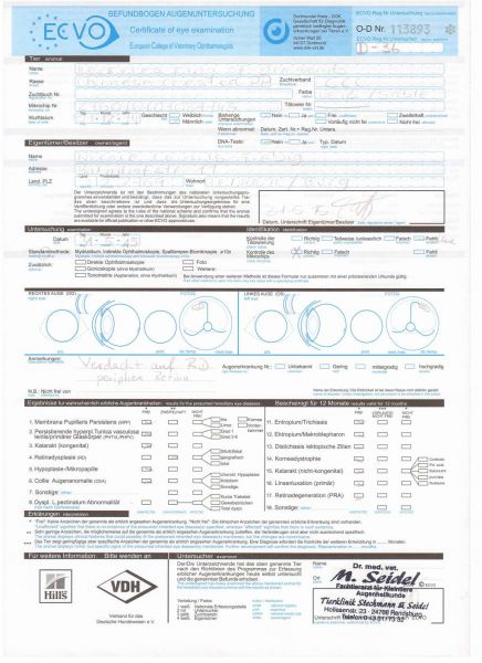 Vorläufiger Befund Augenuntersuchung